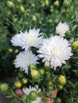 Сорт росте в горщиках. Кущ 40-60 см., Цвітіння вересень-листопад. Квітки повні махрові, чистого білого кольору, 3-4 см у діаметрі. Головна перевага сортів із цієї серії - збереження декоративності при заморозках до мінус 10 градусів. Вона відтає і продовжує цвісти.