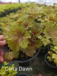 Delta dawn – найефектніший сорт із зелених із червоними прожилками. У порівнянні з “Тірамісу”, наприклад, він більш потужний, невибагливий, з великим листям. Червоні прожилки на молодому листі дуже яскраві, особливо восени, охоплюють весь лист. Старе листя майже зелене, але від цього весь кущик виглядає навіть цікавіше. Безперечно, ми рекомендуємо мати цей сорт у колекції.